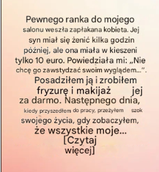 Czasem zwyczajny dzień staje się niezapomnianym momentem. Ta historia, zrodzona w salonie fryzjerskim, to piękna lekcja życia i dobroci. Są…