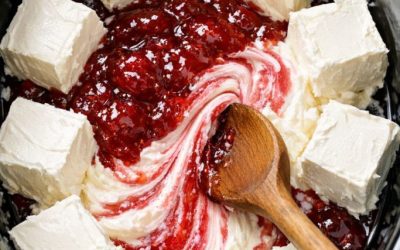 Tajna broń Potluck: łyżka w dżemie truskawkowym, dodaj ser śmietankowy i pozwól mu zamienić się w coś, na co ludzie nie przestaną krążyć z powrotem.