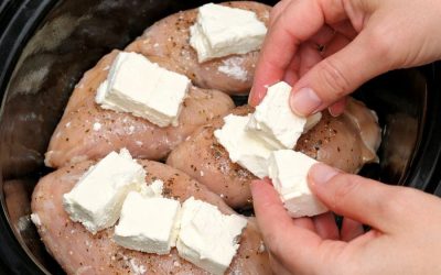 Nałóż ser śmietankowy na surowe piersi z kurczaka i dodaj 2 podstawowe produkty spożywcze do wolnowaru, aby uzyskać kremowy obiad, na który mam ochotę co tydzień