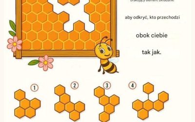 Na powyższym obrazku układance o strukturze plastra miodu brakuje jednego elementu. Twoje zadanie jest proste: wybierz kształt, który pasuje do…