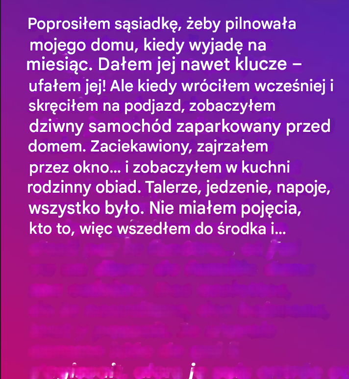 Wyjechałem w miesięczną podróż służbową, ufając sąsiadowi, że dopilnuje mojego domu. Ale kiedy wróciłem wcześniej, zastałem na podjeździe obcy samochód… i obcą rodzinę jedzącą obiad w mojej kuchni!