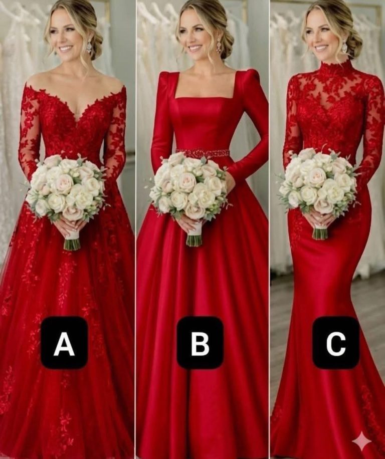 Wybór sukni ślubnej to jeden z najważniejszych momentów dla przyszłej panny młodej. Trzy modele (A, B i C) oferują odważną i elegancką alternatywę dla tradycyjnej bieli: czerwień, symbol miłości, namiętności i siły.