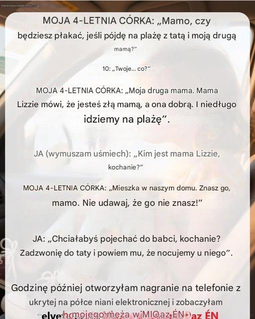 Kiedy czteroletnia Tess po raz pierwszy wspomniała o swojej „drugiej mamie”, świat Piper zamilkł. Niektóre zdrady nie objawiają się krzykiem, ale milczeniem, planowaniem i siłą. Kiedy Piper powoli układała puzzle, zrozumiała siłę kogoś, kto po prostu wstaje i odchodzi, i co tak naprawdę znaczyło być pierwszą osobą, do której zwróciła się jej córka.