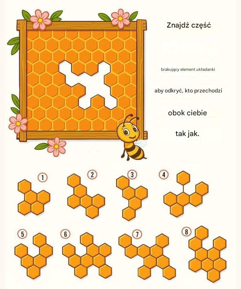 Przyjrzyj się uważnie kształtom ponumerowanym od 1 do 8. Bez wahania wybierz wzór plastra miodu, który Twoim zdaniem dopełni układankę.
